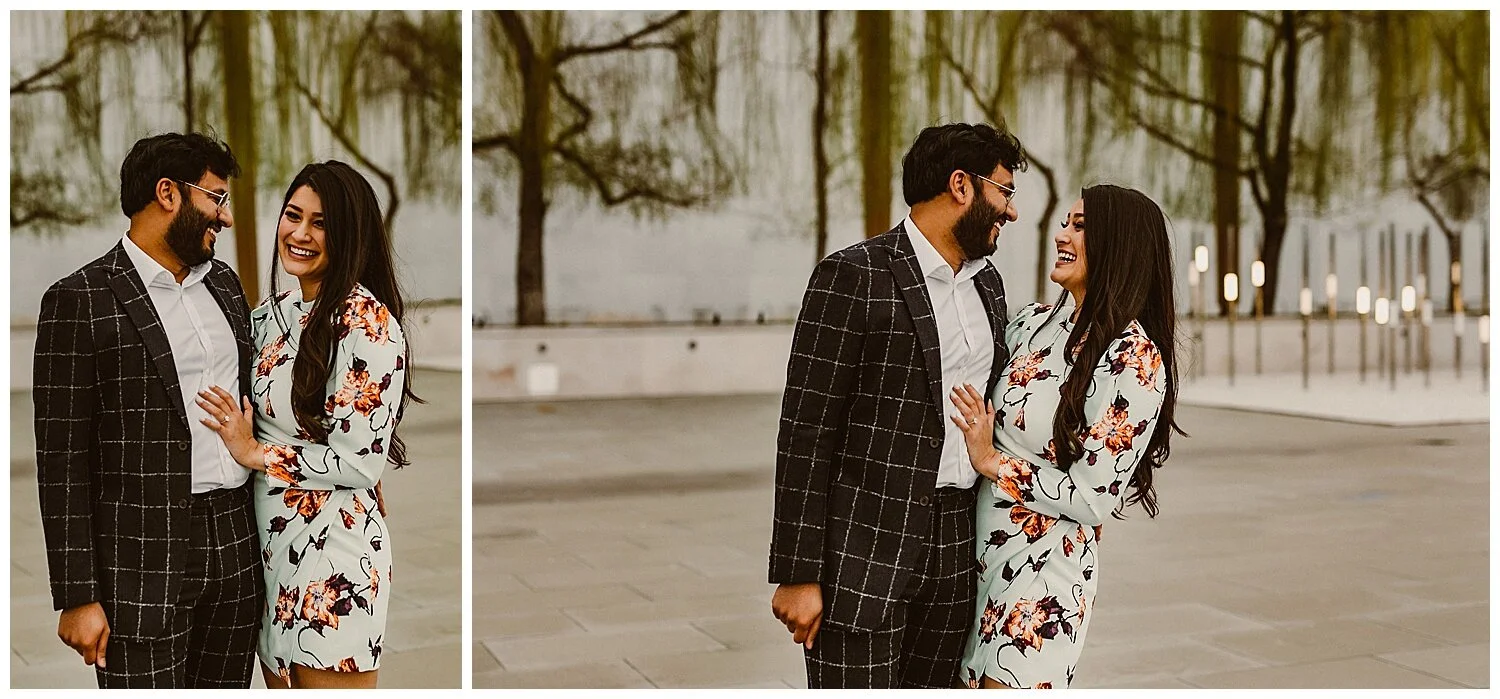 AJ was suppose to prose to Komal last weekend on a special trip they had planned to Montreal but COVID-19 had other plans! Because AJ wanted to propose on Komal’s birthday, he decided to make other arrangements. His friend Usman who happened to be one of my past proposal clients called me up 48 hours before to help capture this momentous event at The John F. Kennedy Center in Washington DC. Usman and some of AJ and Komal’s friends met me a half hour before and we found this beautiful weeping willow backdrop to set up the proposal in front of that we marked with stick for them to stand (it was pretty funny!). All his friends hid and I pretended to photographing “the landscape” when they arrived the spot. Aj got down on one year, popped the question and Komal said, “YUZZZZ!” After the proposal, all of their friends ran out to surprise them! After some celebrating and group pictures, I took them for some couples portraits. Komal and AJ were beaming the whole time and had the most beautiful post engagement glow about them Congratulations AJ and Komal! <3
